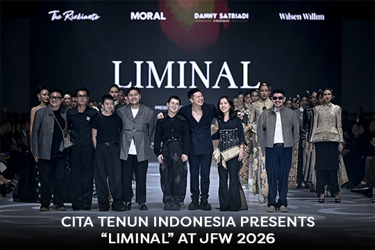 Cita Tenun Indonesia membuka ruang "LIMINAL" di JFW 2026, merayakan dialog tradisi wastra dengan interpretasi radikal bersama empat desainer kontemporer yaitu The Rizkianto, Moral, Danny Satriadi, dan Wilsen Willim.
