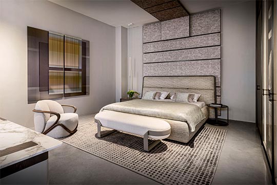 Every surface, every curve, every texture in this space carries a quiet story of craftsmanship. You feel it in the grain of the wood, the softness of the leather, the way light moves gently across marble. Giorgetti doesn’t shout. It whispers. And in those whispers, you find elegance that lingers.