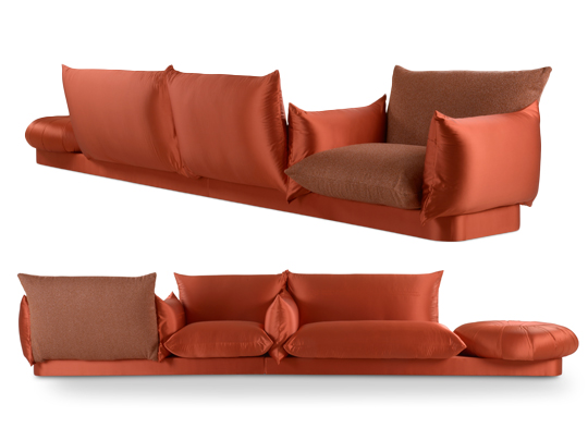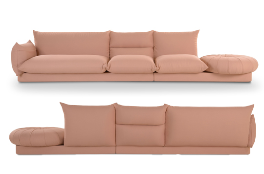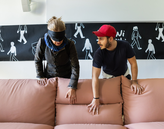 Luca de Bona from Debonademeo explained the project’s challenge: “How do you design a sofa without seeing its shape and color? How do you highlight its fundamental characteristics such as comfort, softness, [and] presence in space?” The collection features smooth yellow satin fabric and soft, rounded shapes that welcome and guide the user’s hands safely.