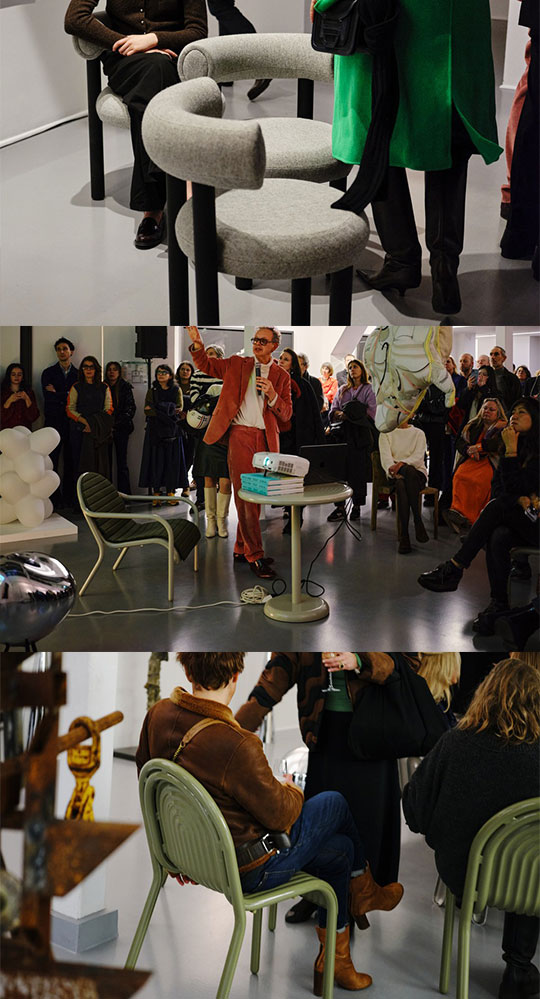 Among the featured artists are Hermann Nitsch, João Trevisan, Christian Lapie, Anna Malagrida, and Tamara Kostianovsky, whose sculptural and conceptual works anchor the exhibition’s artistic core. Against this backdrop, Dixon introduces new designs, including the debut of the GROOVE outdoor furniture collection, the JACK portable light, signature pieces from the MELT and FAT series and