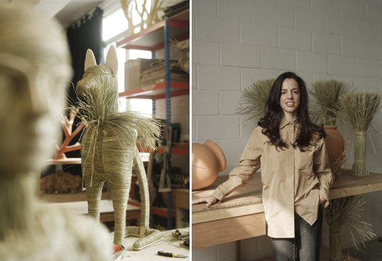 This dialogue continues through Sagarminaga’s contribution, where scenes inspired by Ancient Egypt are translated into life-sized, handcrafted works using natural fibres. Balancing tradition with experimentation, her pieces introduce a sculptural softness—blurring the line between surface, object, and spatial experience.