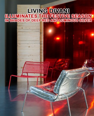 Living Divani illuminates the festive season in shades of deep red and luminous silver, reimagining its iconic designs with festive radiance.”