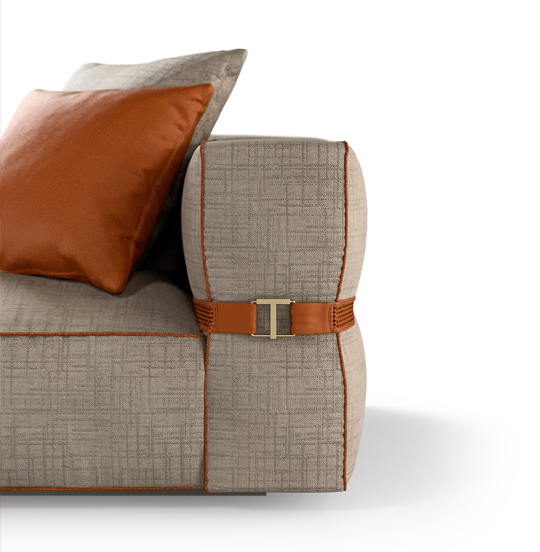 Clean rectangular volumes, tailored details, and plush cushions create a balance between architectural precision and inviting comfort, while premium fabrics and leather accents enhance its sophisticated character. Designed as a modular system, B.E.L.T. offers flexible compositions complemented by integrated leather-clad accessories, expressing Turri’s bespoke approach to modern living.