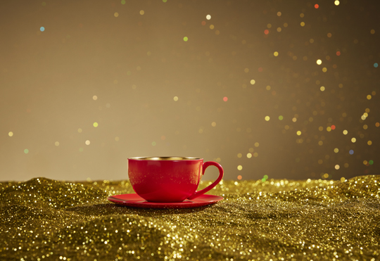 In festive red with a glowing gold interior, the Desire cup and saucer transforms each sip into a quiet moment of holiday radiance.