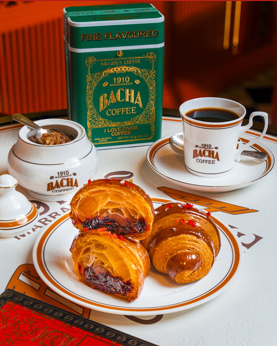 A hallmark of the Maison, the I Love Paris Coffee Croissant returns for the festive season with an irresistible flourish. Infused with the signature I Love Paris coffee, this exquisite pastry unveils a vibrant filling of blackcurrant, raspberry, and blueberry, crowned with crisp berries and delicate silver flakes. Each bite is a symphony of buttery layers, bright fruit, and refined sweetness — an elegant celebration of flavour that captures the warmth, joy, and sophistication of the holidays with Bacha Coffee.