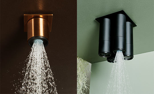 Composed of cylindrical and flat elements, Bar 59 allows for flexible configurations, creating a subtle micro-architecture within the bathroom. Installation is straightforward thanks to technical and compositional plates, yet the clean lines and refined proportions remain uncompromised. The shower heads—available in 90 mm and 50 mm diameters—offer five distinct water experiences. Gentle Rain envelops the body softly, precise Crystal invigorates, fine Atomizing mists refresh, linear Blade massages deeply, and concentrated Energizing flow awakens vitality. Every shower adapts seamlessly to the rhythm of the day, turning function into ritual.