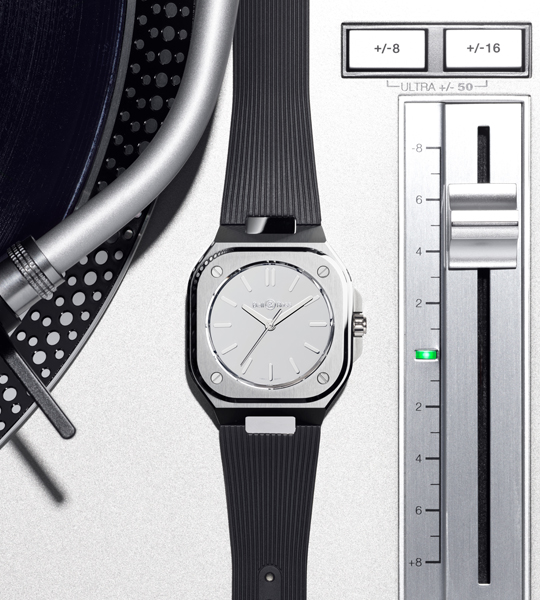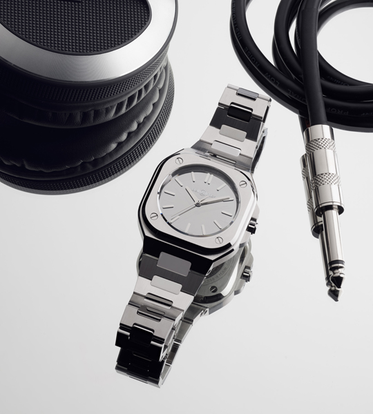 At the heart of its appeal is steel treated not simply as a functional material, but as a medium of light. The mirror-polished and satin-finished 40 mm case and integrated bracelet create a continuous metallic surface that captures and reflects its surroundings. Solid and sculptural, the BR-05 reads almost like a piece of modern design, blurring the line between watchmaking and wearable art.