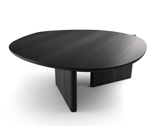 Equally assertive is the Flatiron Table Round Top by Mauro Lipparini. Here, asymmetry becomes a compositional tool. The top is defined by a subtly irregular perimeter that tempers geometric rigidity, while the architectural base—also asymmetrical—anchors the piece with structural gravitas. The tension between fluid contour and bold support generates a table that is visually dynamic yet formally coherent.