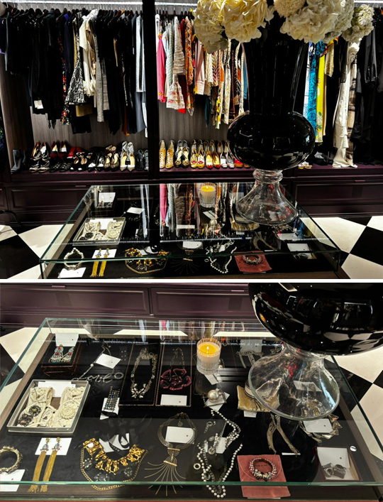Di bawah cahaya lembut dan rak kayu hangat, gaun Chanel, tas Hermès, jaket Balenciaga, sepatu Gucci hingga aksesori Missoni berjajar rapi, sementara di sudut lain buket bunga segar disiapkan untuk pelanggan. Semuanya dirancang agar setiap orang merasa sedang menemukan “harta karun” gaya hidupnya sendiri.