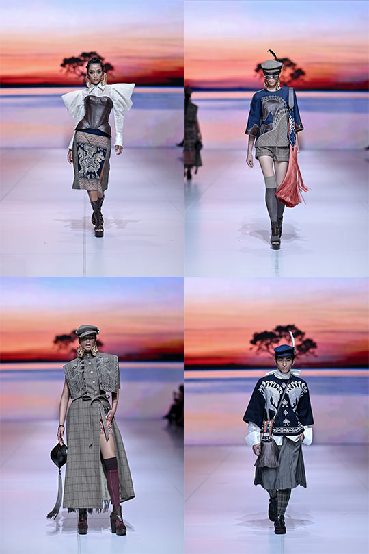 Nuansa Sumba yang kental terpancar dari perpaduan beading kerang dan bulu, wastra potong-laser yang diperca ke atas kain modern, hingga aksentuasi fringe yang mengingatkan kepada surai kuda-kuda Sumba. Yang tak kalah penting, seluruh koleksi ini dirancang secara nirgender dan nonbiner, menawarkan siluet universal. Selain menonjolkan keindahan tradisional khas Sumba, koleksi Spring-Summer 2026 “Bumi Sabana” juga menegaskan komitmen kuat sang perancang terhadap keberlanjutan.