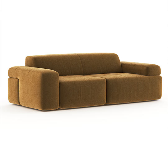 This sense of softness extends into its material expression. Gentle folds in the upholstery introduce a relaxed elegance, softening the sofa’s geometry and lending it a quiet, almost Italian ease. In collaboration with Zimmer + Rohde, a curated selection of fabrics—from textured bouclé and deep-toned chenille to earthy linen blends—allows each piece to take on its own character, with removable covers designed for longevity and change.