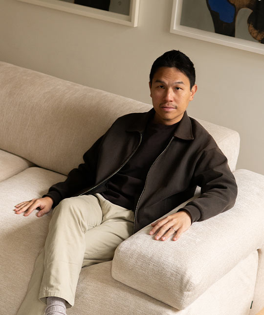 At once monolithic and inviting, the sofa balances architectural presence with tactile comfort. Beneath its sculptural form lies a carefully engineered construction—a plywood frame with Nosag springs layered with varying upholstery foams. A firmer front edge supports ease of movement, while memory foam and a quilted layer of down and hollow fibres create a soft, enveloping seat that gently adapts to the body.