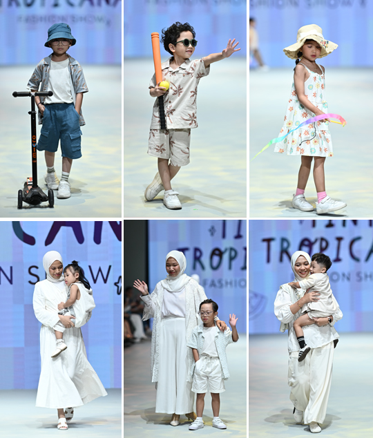 Dari lirih yang reflektif, atmosfer kemudian bergeser menjadi riang saat Plaza Indonesia Kids Fashion Week mengambil alih panggung. Anak-anak melangkah dengan penuh energi, membawakan koleksi cerah dan playful dari Mothercare dan Gingersnaps, sementara Early Learning Center menghadirkan display interaktif yang merayakan imajinasi tanpa batas. Mothercare meluncurkan koleksi musim panas dengan motif tropis dan warna segar yang memancarkan keceriaan hari-hari liburan, sekaligus menghadirkan momen yang lebih inklusif melalui kolaborasi bersama POTADS. Anak-anak dari komunitas ini turut memeriahkan runway, menjadikan panggung semakin hangat dan penuh makna. Dan, Mark & Spencer Kids, yang menampilkan koleksi baju anak yang nyaman untuk bergerak, penuh gaya serta cocok untuk anak – anak yang senang beraktivitas.