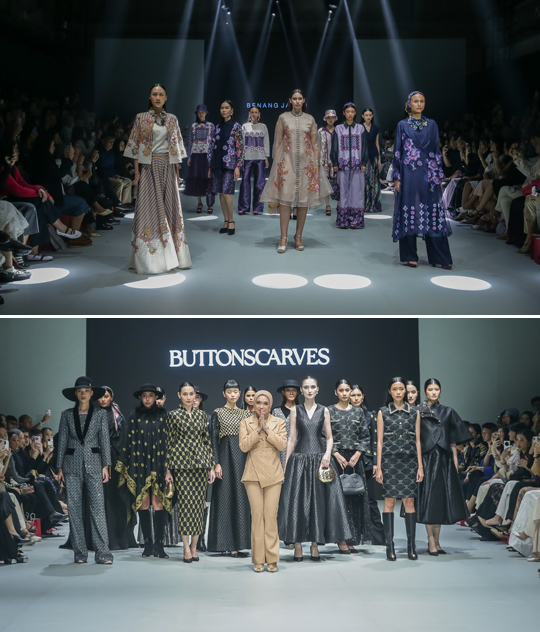 Runway berikutnya memancarkan nuansa glamor ketika Benang Jarum Black Label mempersembahkan “Opulent Bloom”. Setelah memikat mata internasional di Dubai Fashion Week, koleksi ini hadir di Jakarta sebagai rangkaian busana dramatis yang merayakan kelembutan sekaligus kekuatan perempuan modern.