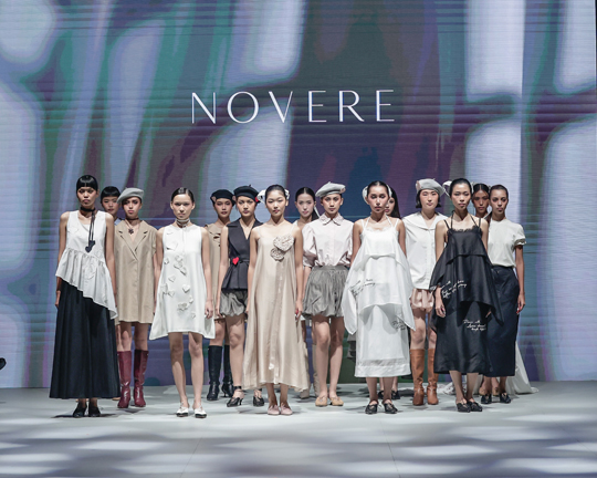 Suasana berubah lebih intim saat Novere menampilkan “Dear All”. Koleksi ini terasa seperti bisikan lembut tentang cinta yang tidak selalu sempurna, tetapi selalu tulus. Potongan yang bersih, detail origami yang rapuh namun indah, serta bordir tulisan tangan yang menyimpan emosi personal—semuanya menjelma menjadi refleksi keseharian. Dear All mengingatkan bahwa cinta tidak selalu megah; kadang ia hadir diam-diam, dalam bentuk perhatian kecil yang sering luput kita sadari.