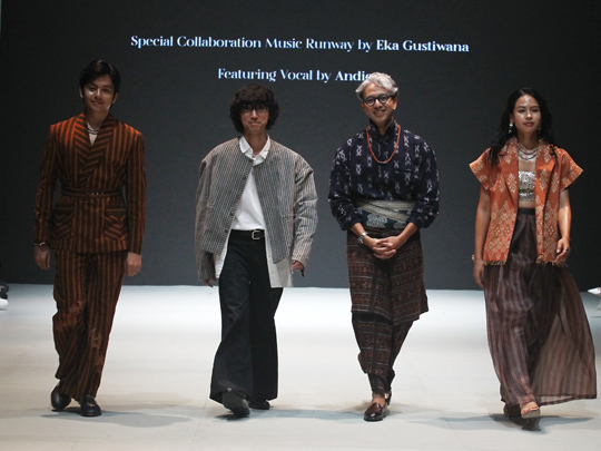 Dan akhirnya, IKAT Indonesia by Didiet Maulana menutup malam dengan “The Isle of Reverie.” Dalam 30 tampilan yang berpadu antara motif tenun, warna tropis, dan harmoni alam Nusantara, Didiet membawa penonton berlayar ke pulau-pulau imaji yang penuh kehangatan. Iringan musik dari Eka Gustiwana dan suara Andien Aisyah memperdalam pengalaman, menjadikannya lebih dari sekadar show—melainkan perjalanan rasa.
