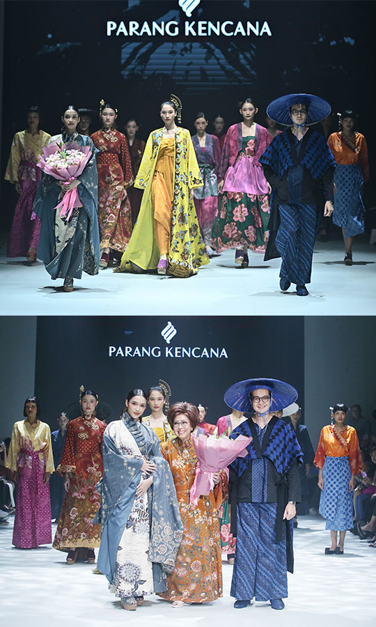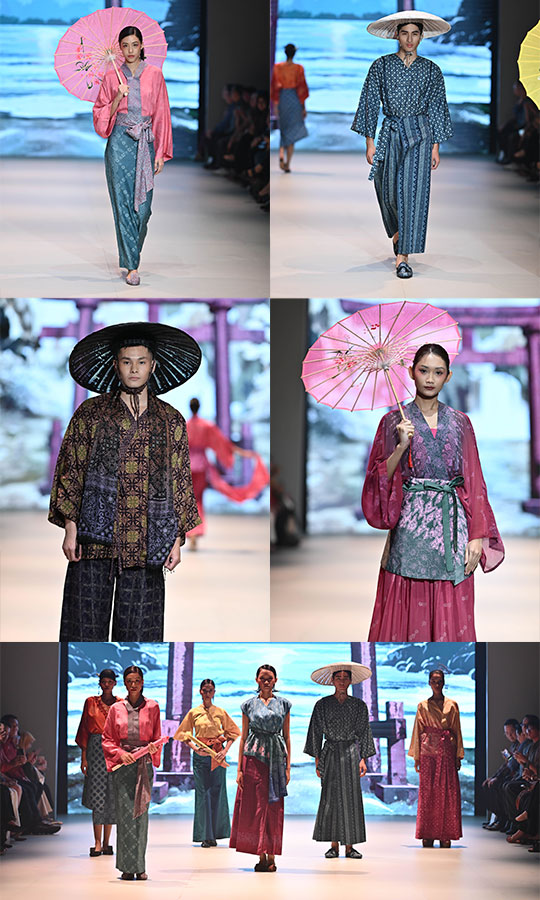 Rangkaian hari kelima dibuka oleh Parang Kencana, yang menghadirkan koleksi bertajuk “SHIKI — A Dance of Season”. Dalam kolaborasi dengan Hutama Sari dan Marista Santividya, Parang Kencana menuturkan puisi tentang empat musim Jepang: haru, natsu, aki, dan fuyu. Setiap musim diterjemahkan ke dalam warna, tekstur, dan motif yang berirama, seolah mengajak penonton menyusuri siklus alam—dari lembutnya sakura hingga pekatnya malam musim dingin. Siluet kimono berpadu dengan kebaya dan rok sarung, menciptakan harmoni antara dua budaya yang sama-sama menjunjung ketekunan dan keanggunan.