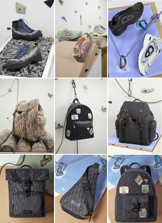 Footwear highlights include the B30 Countdown Tech sneakers in ultra-light N3O nylon and the bold Dior Slickrock sneakers, whose sculpted soles reinterpret the signature Cannage motif.