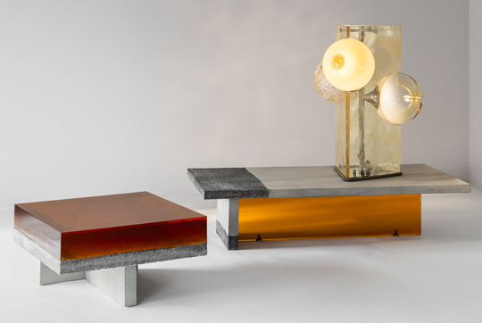 Founded in 2007 by Draga Obradovic and Aurel K. Basedow, the multidisciplinary studio is known for transforming materials into emotional narratives. Their Dubai showcase introduced new evolutions of two signature series: Transparency Matters — exploring the alchemy of resin and concrete through light — and Heritage, a reinterpretation of mid-century furniture through contemporary craftsmanship.