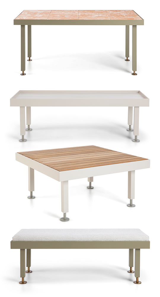 Seeds explores modularity through benches and tables inspired by gardening traditions. Terracotta, natural teak, and slender metal structures come together in light, flexible compositions that adapt to different spaces and uses. Variegated terracotta surfaces, crafted by blending different clays, give each element a unique character. Designed to shift between seating, tables, and display surfaces, Seeds reflects a new harmony between design, landscape, and everyday outdoor living—ideal for both private and hospitality settings.