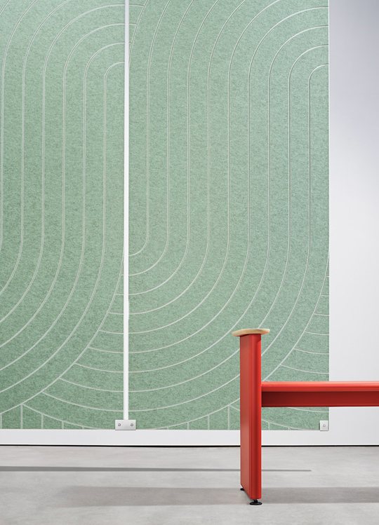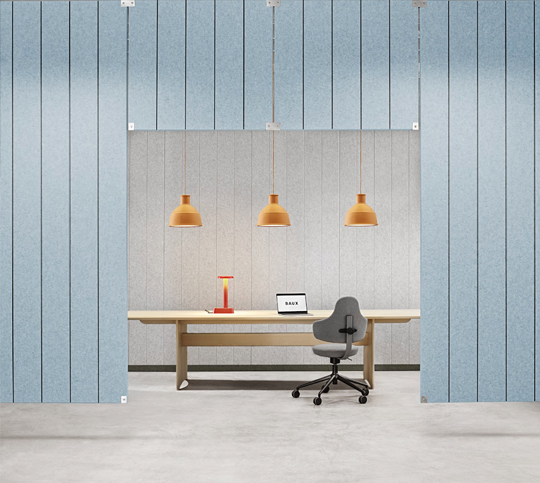 Designed in collaboration with BAUX, X-FELT Floating introduces a new generation of acoustic elements that quietly shape the space. Made from X-FELT, a premium board crafted from PET fibres, the baffles, grids, and floating panels help define zones and soften sound—forming an integral part of the overall spatial concept.