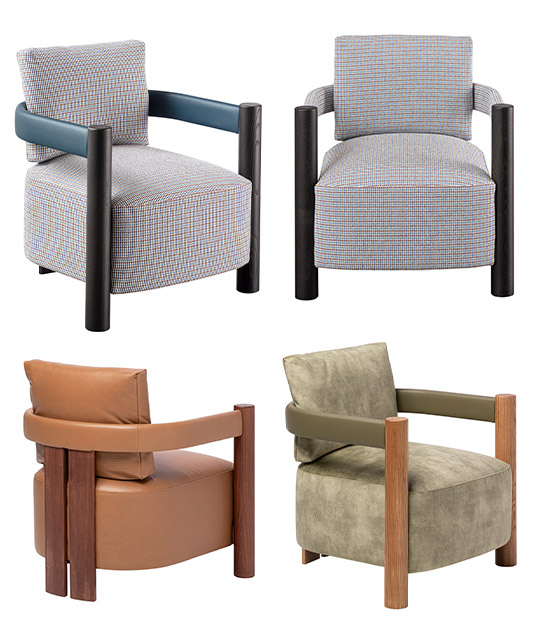 Gallizia’s Cloti is an ode to contemporary comfort expressed through pure volumes and gentle curves. A solid, generous base supports a wide, inviting seat, while an upholstered back and softly padded armrests create a continuous, elegant silhouette. Available fully in leather, entirely in fabric, or in mixed-material variations, Cloti adapts easily to different moods and interior concepts. Wood frame options in natural ash, wenge, and walnut expand its architectural richness.