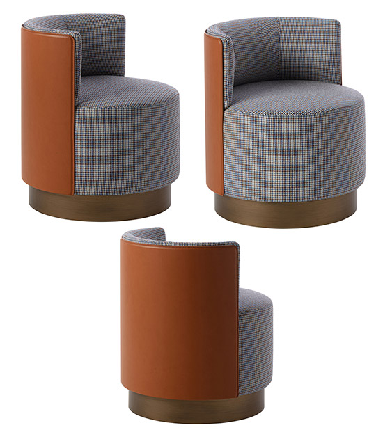 Pillet’s new Clubby Dining refines the proportions of the original armchair, introducing a height tailored perfectly for dining. Inspired by the intimate ambience of Parisian fumoirs, the piece maintains its enveloping semi-circular back and cylindrical seat, now complemented by advanced upholstery options that range from saddle leather to fabric, or a bi-material combination. A striking woven leather version further extends the chair’s versatility for bespoke interiors.