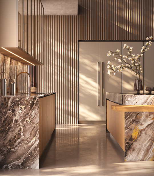 “There is a moment in kitchen design when matter overtakes form and transforms it into emotion,” Narcisi adds. “Volare is not simply a kitchen—it is a domestic landscape sculpted in material, where light becomes a design element.”
