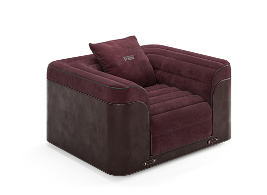 The Walen armchair captures the essence of Gianfranco Ferré Home’s latest collection, where fashion heritage meets sculptural design. Its structure balances firm architectural lines with soft upholstery, creating a refined interplay of form and comfort. Wrapped in saddle leather with straps and button details, the frame subtly echoes the sartorial codes associated with Gianfranco Ferré. Meanwhile, a reinterpreted stripe motif—expressed through precise seam detailing—shapes the armchair’s volumes and proportions, transforming a classic pattern into a defining design element. The result is a statement piece where craftsmanship and fashion-inspired elegance converge.