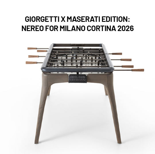 Kicking off the Giorgetti 2026 Collection, Giorgetti unveils Nereo, the first product of the year and the second chapter of its ongoing collaboration with Maserati. More than a foosball table, Nereo transforms play into a sculptural, style-driven experience—on display at Casa Maserati in Cortina and at Giorgetti Spiga – The Place in Milan, set against the international atmosphere of the Winter Olympics.