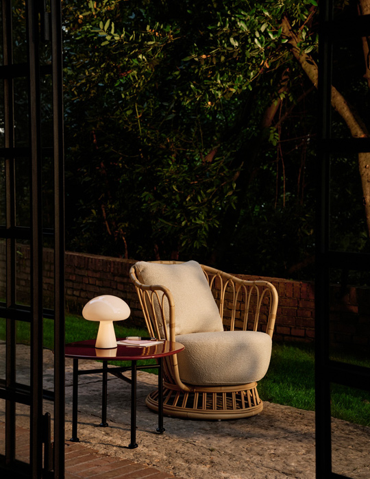 GUBI brings renewed relevance to a Scandinavian classic with the launch of the Grace Outdoor Lounge Chair in a natural-tone weave, extending Tove Kindt-Larsen’s 1936 design into the open air.