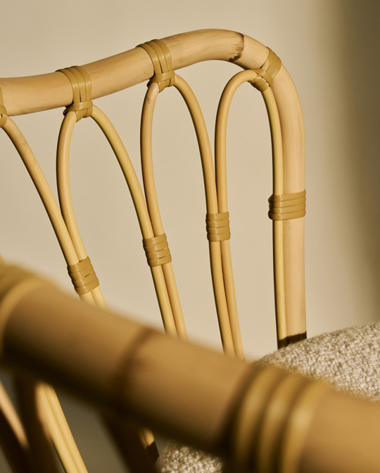 The new weave is crafted from a high-performance synthetic fiber that closely emulates the tone and texture of rattan. Rendered in a soft honey hue, it diffuses light with gentle warmth, accentuating the chair’s continuous contours. Each strand is finished with subtle nodes that echo the natural joints of the vine, creating tonal variation and artisanal depth. In sunlight, the open weave casts dappled shadows reminiscent of light filtering through leaves, reinforcing the chair’s dialogue with nature.