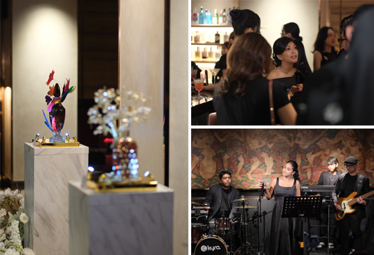 Three bespoke cocktails capture the essence of Shalimar — its sensual amber notes, its whisper of vanilla and smoke, its promise of eternal love. Each glass comes with a delicate perfume blotter, inviting guests not only to sip, but to breathe in the perfume of eternal love — turning each moment into a symphony of aroma and emotion.