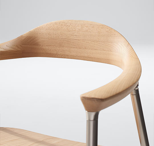Made from domestic Japanese chestnut, a material rarely used in furniture-making, Crossa WOOD turns the timber’s natural lightness into functional strength—balancing comfort, stability, and refined form. Its hybrid construction of wood and steel ensures durability while preserving an airy, minimal presence.