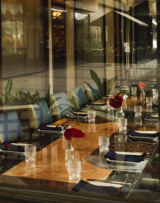 Named after the French artist Jean Jullien, the restaurant mirrors his bold, expressive spirit. Inside, striking red and blue accents, and wooden textures evoke the charm of a Parisian bistro—playful yet refined, sophisticated yet relaxed.