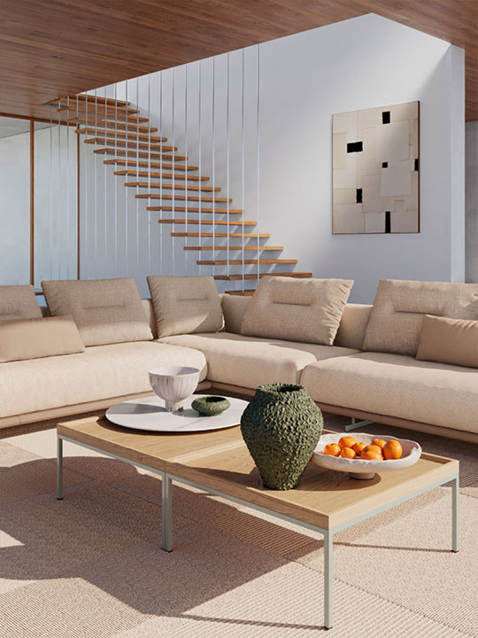 Rangka ramping TAYA menopang bantalan empuk, memberi kesan seolah sofa ini melayang. Siluet horizontal dan bersihnya selaras dengan interior kontemporer, sementara pilihan hingga tiga material memungkinkan personalisasi warna dan karakter. Semua cover mudah dilepas, tersedia untuk penggunaan indoor maupun outdoor, dan dirancang tahan lama serta mudah dibersihkan. Sofa ini juga dilengkapi bantalan samping fleksibel, rak keramik opsional Calacatta atau Black Coffee Marble, dan coffee table yang serasi untuk ruang indoor maupun outdoor. Gabungan desain ekspresif Denmark dan presisi Jerman membuat TAYA bukan hanya pelengkap ruang, tetapi pernyataan gaya hidup modern yang fleksibel dan elegan.