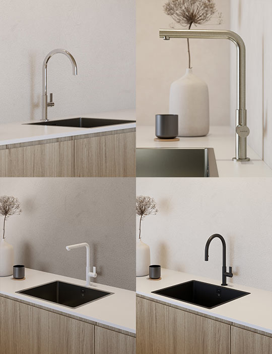 Lieve’s signature handle flows naturally in the hand, while its forward-opening lever fits even the coziest kitchen corners. Cold-water priority encourages mindful consumption, marrying comfort with sustainability. Compact yet versatile, it is available with L- or J-shaped spouts, in a classic mixer or a pull-out single-jet spray head, adapting to the rhythm of everyday life.