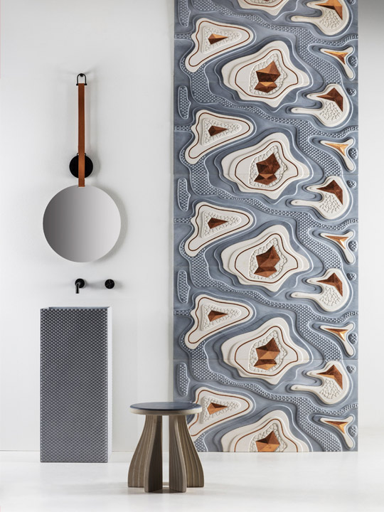 Inspired by the geothermal phenomena of Pantelleria, the Favare decorative panel by Elena Salmistraro for Lithea translates the island’s volcanic breath into a sculptural surface.