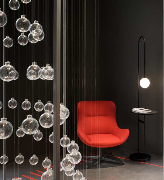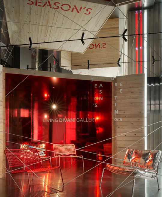 Living Divani illuminates the festive season in shades of deep red and luminous silver, reimagining its iconic designs with festive radiance.”
