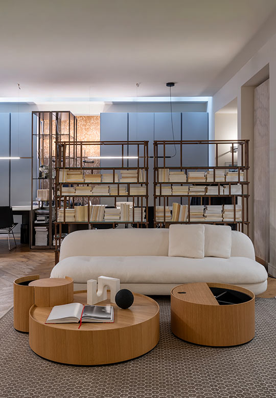 At the showroom of Salvioni Milano Durini, Scenografie Contemporanee by Living Divani unfolds as a spatial essay on contemporary dwelling — where design is neither spectacle nor statement, but a calibrated expression of everyday life.
