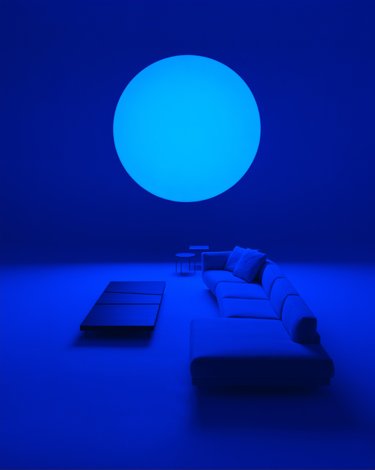 Released from architectural context, icons such as Extrasoft and Echoo System stand alone—silent, sculptural, suspended in vast chromatic atmospheres. Expanses of saturated light, subtly echoing the perceptual investigations of James Turrell, dissolve walls and boundaries. Space is no longer built—it is illuminated into existence.