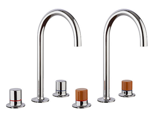 At the centre of the collection is a three-hole tap with a high spout, characterised by soft and continuous lines that reflect Colombo’s distinctive design language. Seamless surfaces create a fluid and sculptural form, while polished finishes enhance the reflective character of the piece. Saturated colour accents run throughout the collection as a distinctive signature, highlighting its geometry and adding a vibrant visual dimension to the design.