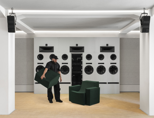 The presentation introduces new furniture proposals, including a collection conceived by Cristián Mohaded, defined by an elegant interplay of fabrics and colours. The pieces feel instinctive and tactile, bringing warmth and a sense of craft into a radical context through material and tone.