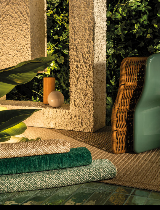 The palette ranges from warm natural tones—tanganika, sand, tobacco—to vibrant accents like rust and aquamarine. Thoughtfully curated, these colours pair effortlessly with fine woods, marbles, stones, and lacquered finishes. Together, they strengthen the character of each furnishing piece, creating a cohesive visual and tactile narrative between indoor and outdoor spaces.