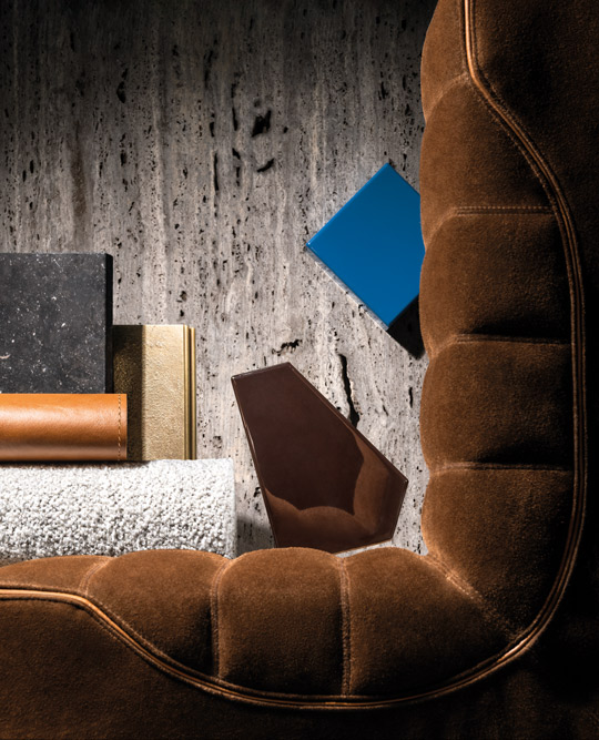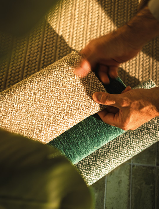 Behind these refined finishes lies a meticulous in-house research journey led by the Style Office within Minotti Studio. It begins with the careful selection of certified suppliers—valued for reliability, traceability, and transparency—followed by the exploration of natural fibres, premium leathers, and the development of innovative textures. This is where artisanal heritage meets technological advancement, giving life to a collection that feels both grounded and forward-leaning.