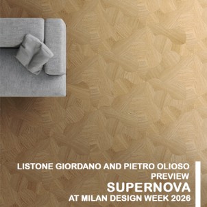 Previewing at Milan Design Week 2026, Supernova, designed by Pietro Olioso for Listone Giordano, transforms wood flooring into a surface shaped by light...