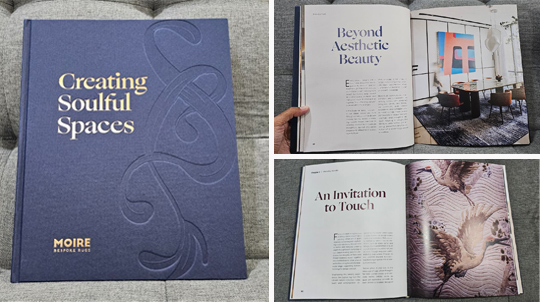 Pada kesempatan yang sama, MOIRE Bespoke Rugs juga meluncurkan buku “Moire Rugs: Creating Soulful Spaces”, yang mendokumentasikan perjalanan 12 tahun brand ini melalui rangkaian kolaborasi kreatif Floor Fairy Tales. Momen pembukaan ini sekaligus menjadi perkenalan koleksi terbaru MOIRE Bespoke Rugs untuk tahun 2026, hasil kolaborasi bersama Roland Adam, Agam Riadi (Agam Riadi Interiors), Anita Boentarman, Gondojules (Brian Gondokusumo & Julia Lestari), DMDIO (Santi Alaysius & Hamphrey Tedja), dan Rumanara Studio (Dwi Andika). Setiap kolaborator menghadirkan interpretasi yang berbeda, namun saling terhubung dalam eksplorasi desain yang matang. Mewakili DMDIO, Santi Alaysius menyampaikan, “Bagi DMDIO ini adalah kolaborasi kedua dan senang menjadi saksi akan berkembangnya jenama ini menjadi lebih profesional dan semakin solid produksinya sehingga kolaborasi untuk kali ini begitu menyenangkan. Kami sendiri secara desainer memilih untuk menjadi lebih dewasa dalam eksplorasi desain kami.”