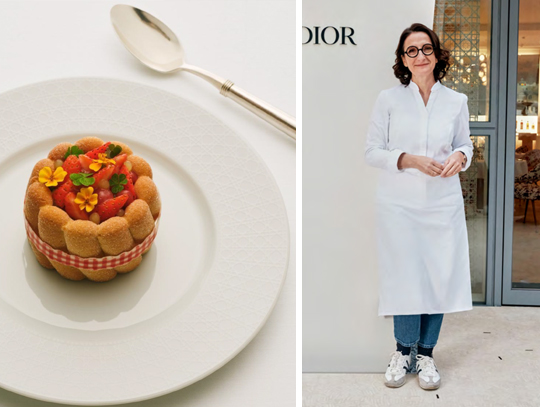 Desserts continue this couture-inspired narrative. In homage to the Miss Dior houndstooth, Pic revisits her signature millefeuille, balancing architectural precision with lightness and finesse.
