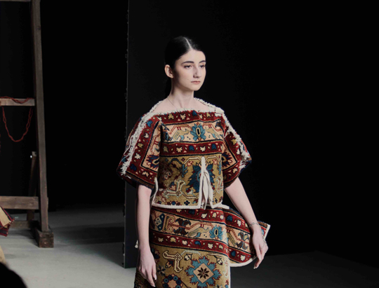 Deretan jenama Rusia seperti Sovushkas Bag, Stas Lopatkin, dan Sasha Barabakov menghadirkan pendekatan yang beragam namun berakar kuat pada narasi budaya. Sovushkas Bag menyusun kembali karpet Armenia dalam komposisi denim dan kulit yang tak terduga. Stas Lopatkin merangkai folklor dan tailoring dalam dialog yang halus antara Timur dan Barat. Sementara itu, Sasha Barabakov bergerak melalui memori—lembut, nostalgik, dan nyaris tak kasat mata dalam detailnya.