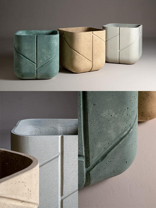 Two proprietary formulations support this development. Cementeco, composed of 100 per cent ecological ingredients, reduces weight by approximately two-thirds compared to traditional concrete while preserving durability. Stone Lite combines concrete and mineral binders to produce a richly textured, stone-like surface defined by depth and chromatic variation. Both solutions recalibrate solidity, enabling outdoor furnishings that are robust yet visually light.